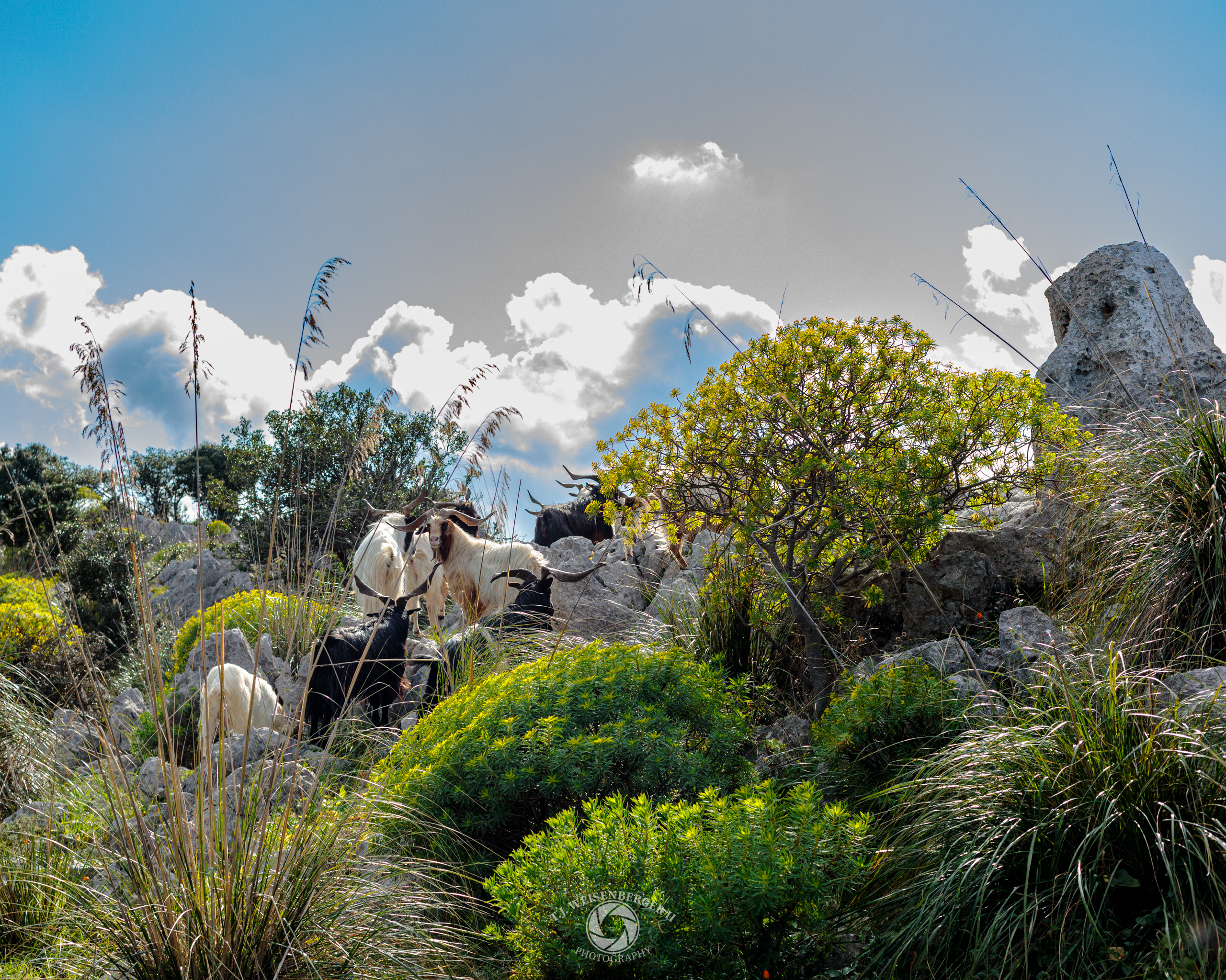 Semi-wild Etna goats roam the rocky slopes.