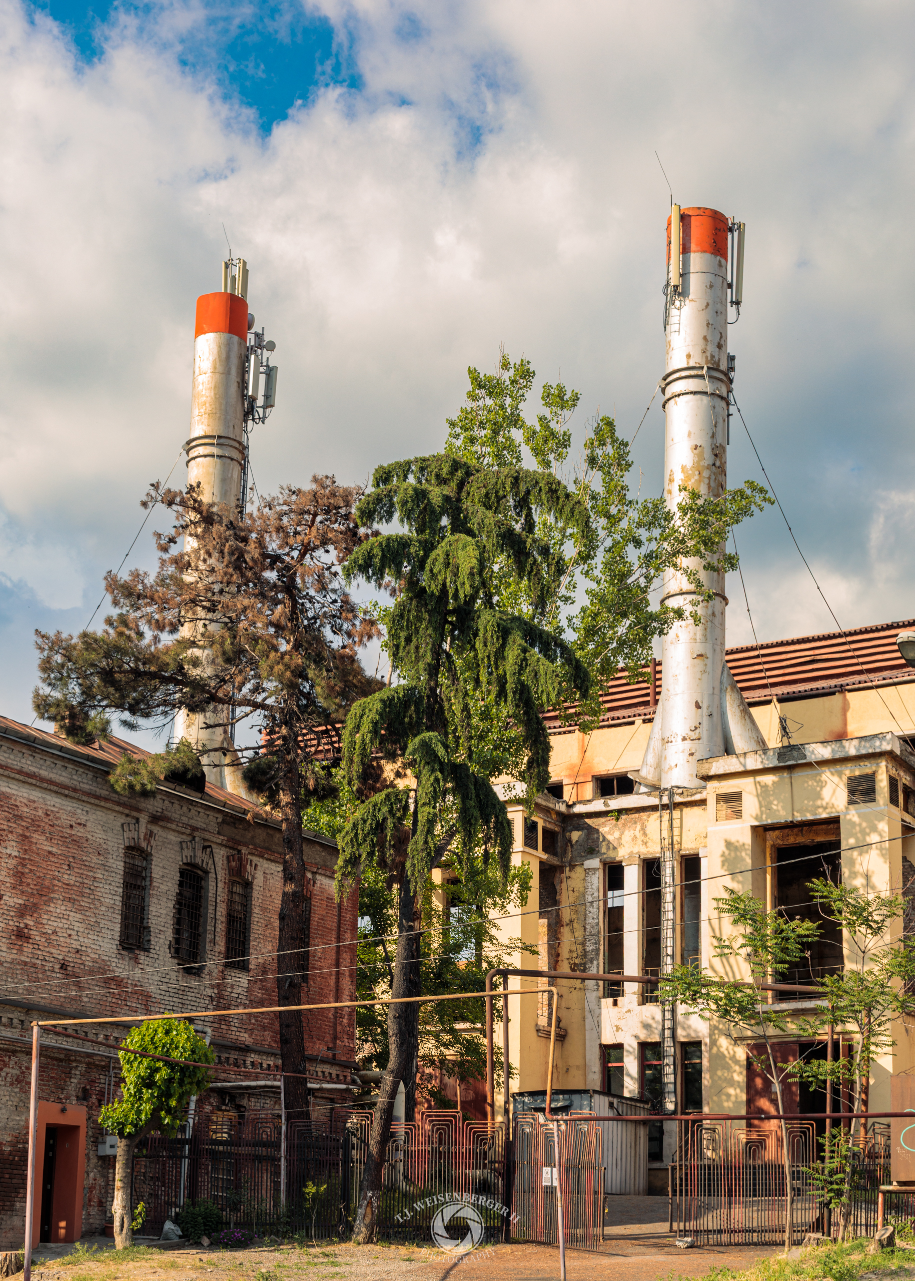 Weathered industrial buildings and smokestacks stand amid encroaching greenery, reflecting layers of industry, abandonment, and change in the city’s urban fabric.