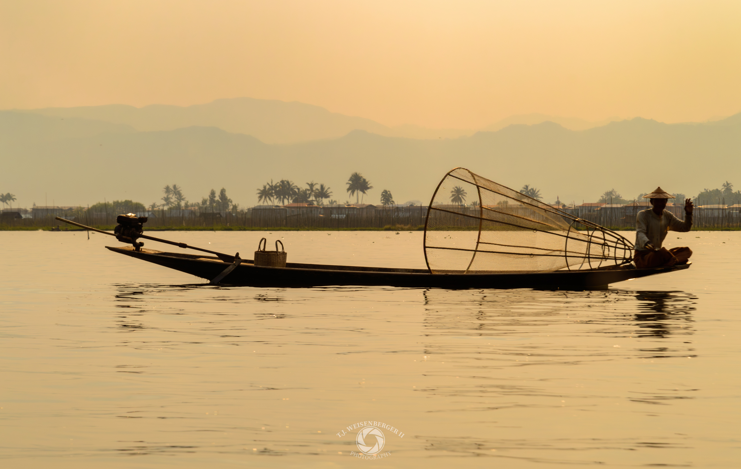 An Intha fisherman, one of the “Sons of the Lake,” sits quietly on the water.