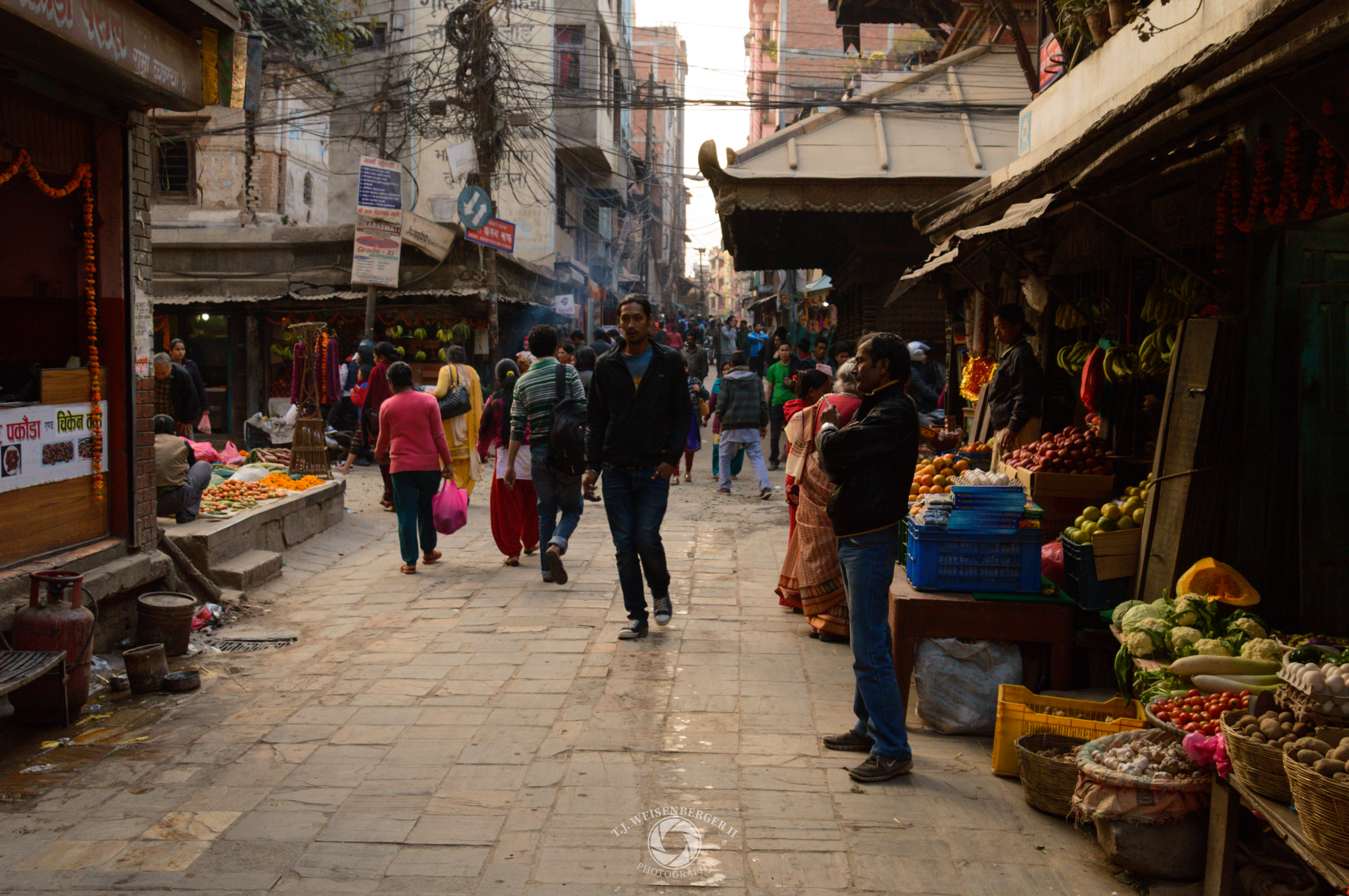 A busy street lined with produce markets cuts through the heart of the city.